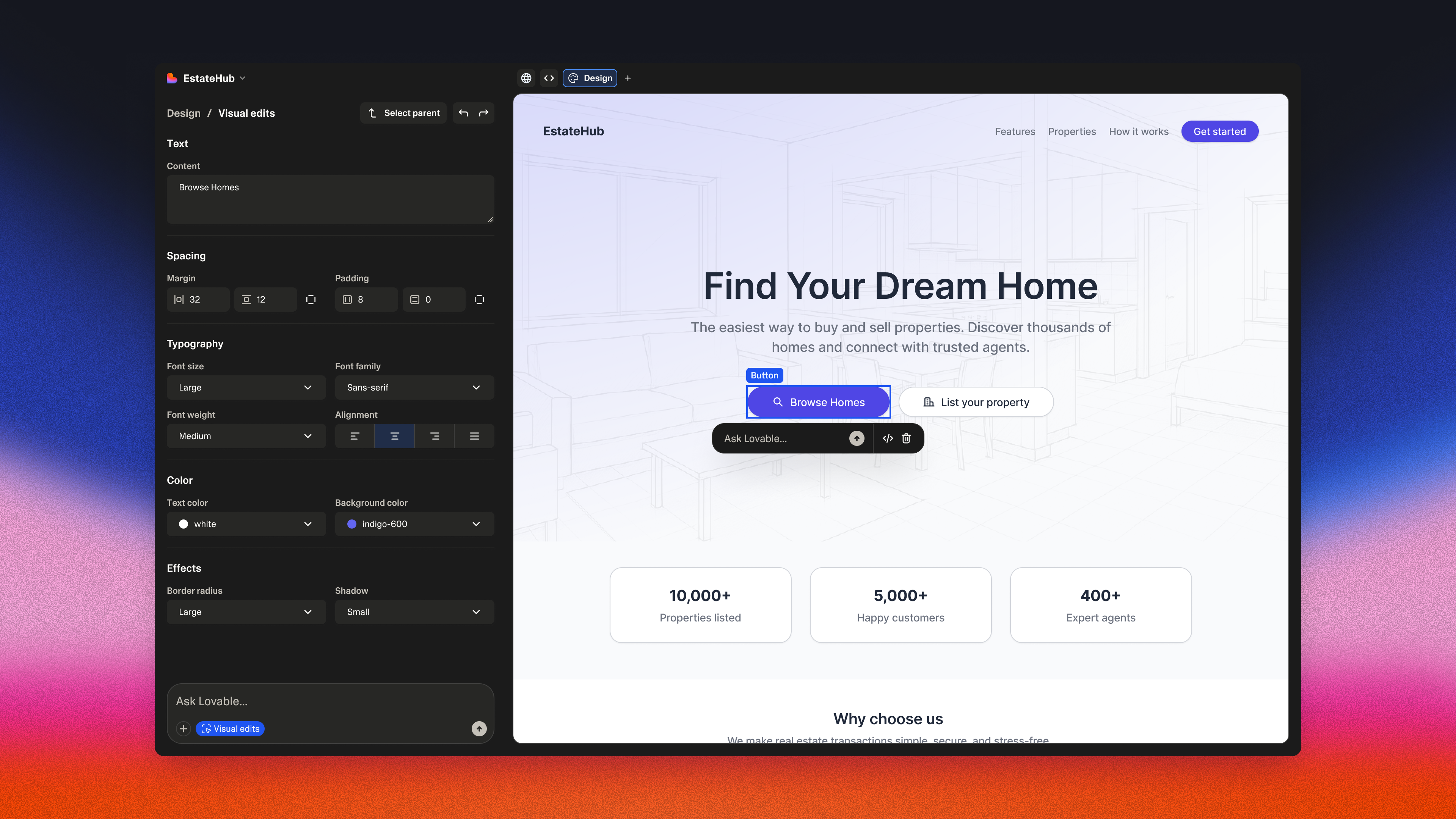 Edit and create new images with AI, so you can level up your apps without leaving Lovable or hunting for stock photos. Describe the image you want and let Lovable create it for you.
